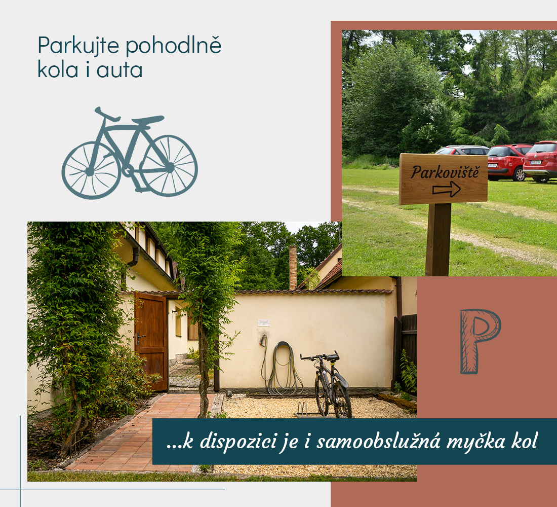 Kola si uložíte ve společné uzamykatelné kolárně a své auto zdarma zaparkujete na pozemku penzionu.